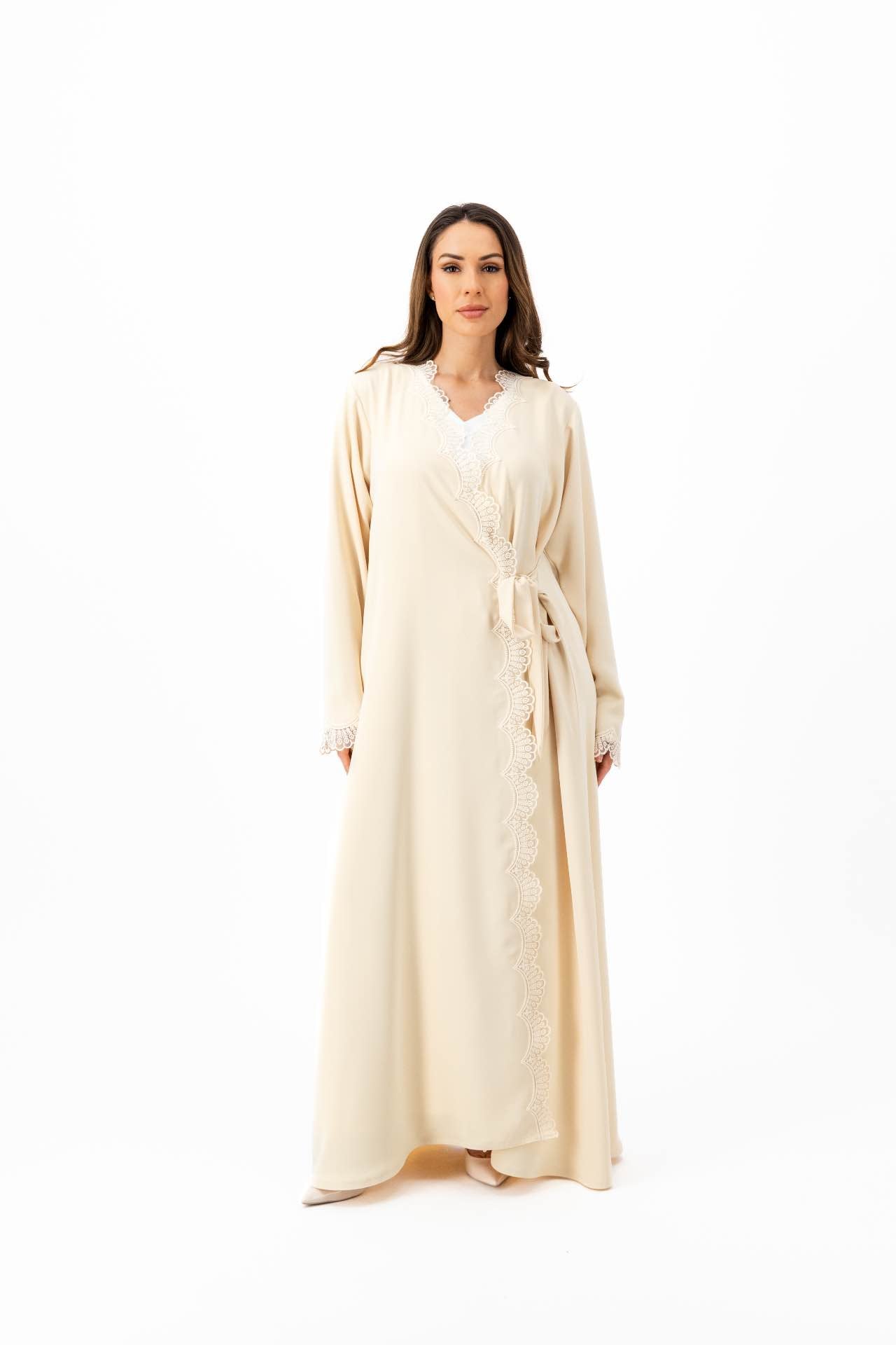 Style: straight cut with a side tie and sided lace