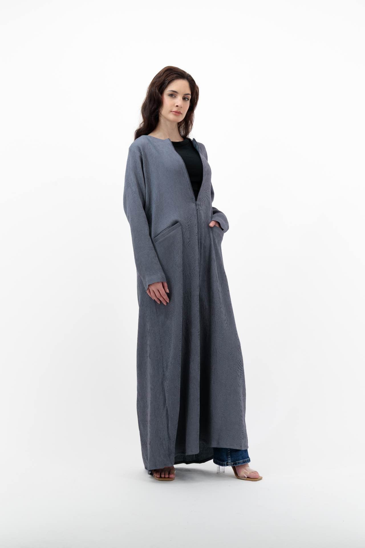 Style: straight cut with a zipper